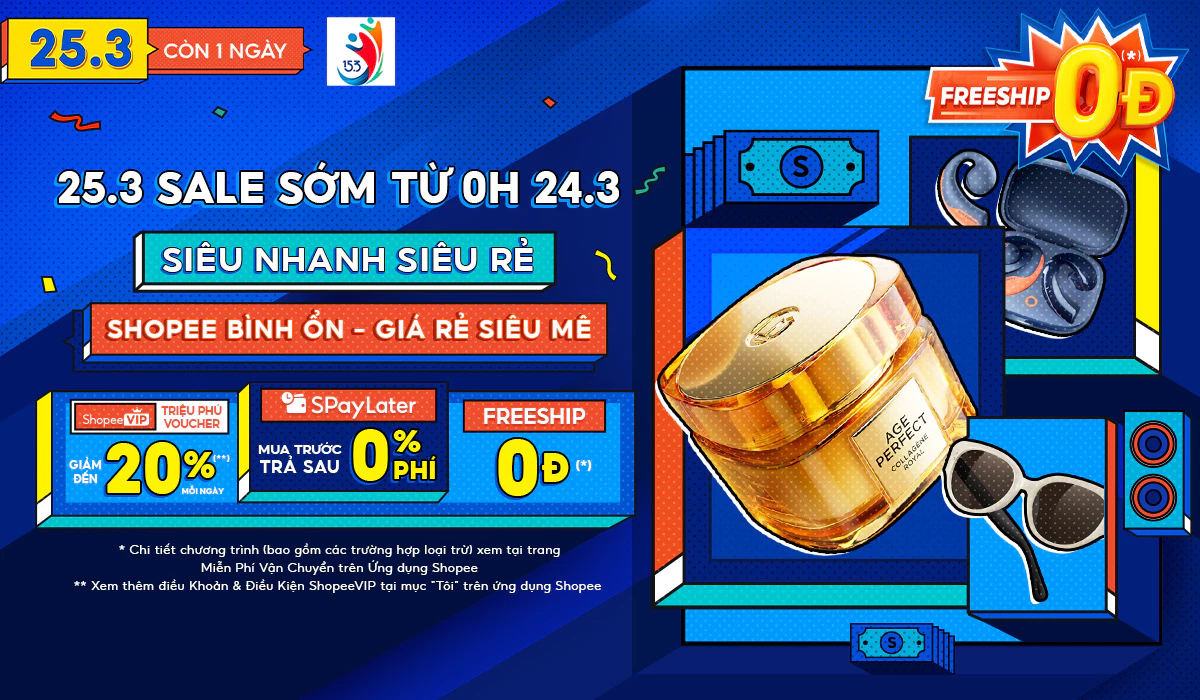 Shopee 25.3 – Cuối Tháng Lương Về chính là cơ hội vàng để bạn săn deal siêu hời và tận hưởng loạt ưu đãi cực khủng. Với Voucher Giảm Đến 1 Triệu, ShopeeVIP Giảm Đến 20%, Freeship 0Đ việc mua sắm chưa bao giờ hấp dẫn đến thế. Nhanh tay thêm ngay các sản phẩm yêu thích vào giỏ hàng và chuẩn bị săn sale vào ngày 25.3, để không bỏ lỡ những khuyến mãi cực chất từ Shopee! Cảm ơn bạn đã theo dõi bài viết, hẹn gặp lại bạn trong các chương trình khuyến mãi tiếp theo của Shopee!